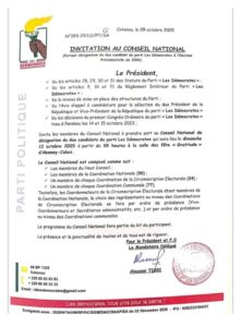 Le Conseil National du parti Les Démocrates, initialement prévu le samedi 11 octobre 2025, se tiendra finalement le dimanche 12 octobre 2025, à partir de 09 heures, dans la salle des fêtes Gratitude d’Abomey-Calavi. Cette session sera consacrée à la désignation du binôme candidat à la présidence et à la vice-présidence de la République.